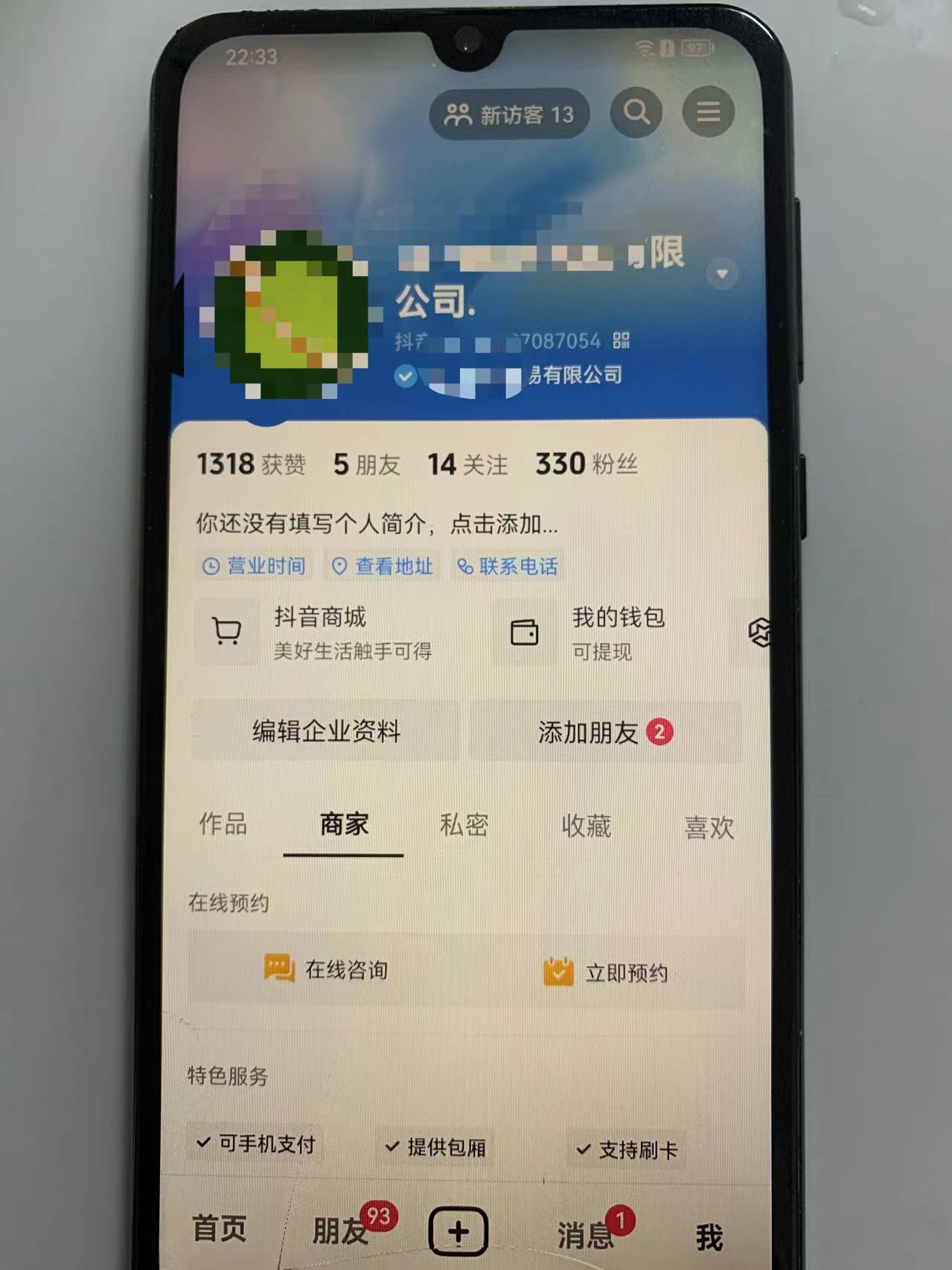 抖音实名蓝V(企业主体实名账号)实体卡注册可换绑